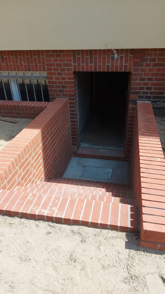 Die staubigen Sockelarbeiten sind abgeschlossen. Jetzt wird der erdberührte Bereich abgedichtet, die Kellereingänge ausgehoben und der Traufstreifen gesetzt. Ab Anfang September erfolgt dann auch hier der Anbau der Balkone.