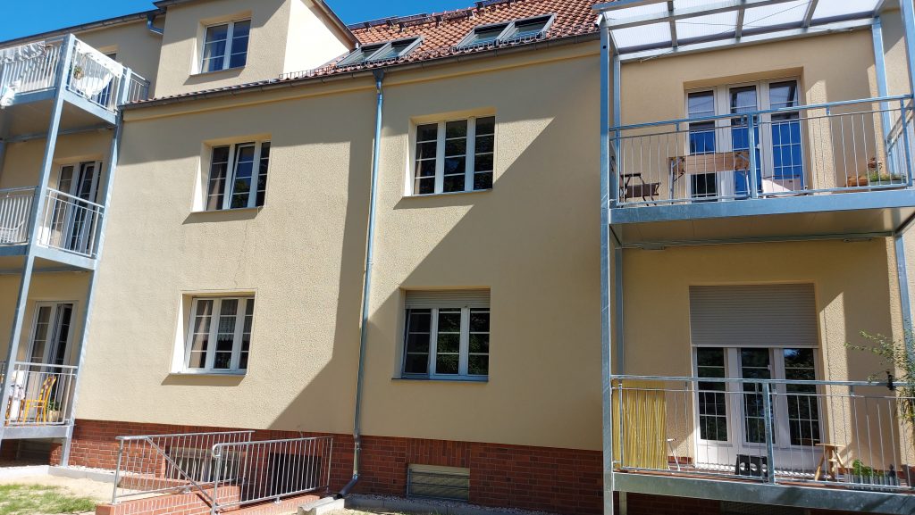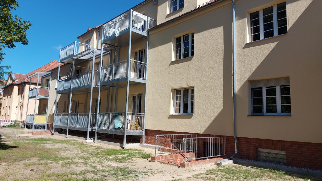 Nach dem Anstrich der Fassade sind nun am Haus Franz-Mehring-Straße 57 und 59 die Balkone angebaut und für die Bewohner freigegeben. Diese werden bereits rege genutzt.